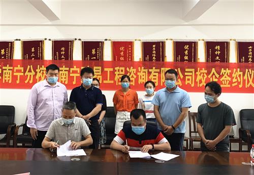 5月28日上午,南宁分校与南宁臻昂工程咨询有限公司举行校企合作签约仪式在空港校区物华楼406会议室举行。南宁分校副校长耿杰利、土木与测绘工程系主任刘茂军,系党总支书记黄文学,南宁臻昂工程咨询有限公司总经理李子文一行出席签约仪式。参加本次签约仪式的还有土木系招生就业相关辅导员以及教师代表。
