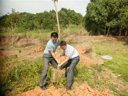 学校校长助理、南宁分校校长冯兵(左一),英国上市公司365党委副书记唐承泽(右一)参加植树活动