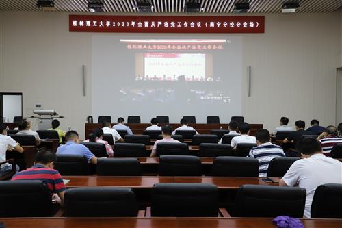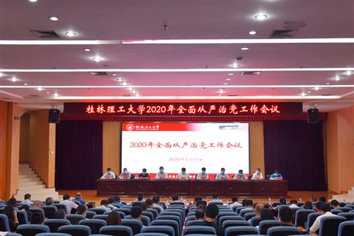 为深入学习贯彻习近平总书记在十九届中央纪委四次全会上的重要讲话精神、自治区纪委十一届六次全会精神以及全国、全区2020年教育系统全面从严治党工作视频会议精神,分析研判、部署安排学校全面从严治党工作,5月15日上午,学校在雁山校区图书馆报告厅召开2020年全面从严治党工作会议。在家校领导李国忠、解庆林、齐俊斌、吴志强、王玫、梁福沛、王敦球、韦学敏、邓国彬、曾繁荣出席会议,学校党委委员、纪委委员,各单位、各部门主要负责人,各二级学院党委副书记、纪委书记,党群部门副职领导参加会议。会议由解庆林校长主持。