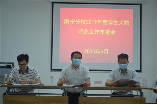 5月7日,南宁分校在大学生创新创业基地校园招聘宣讲室召开2019年度学生优秀人物评选活动工作布置会。南宁分校党委副书记唐承泽出席会议并讲话,宣传部、学生工作部、团委、现代教育技术中心、招生与就业办公室相关人员及各系学工组长参加会议。