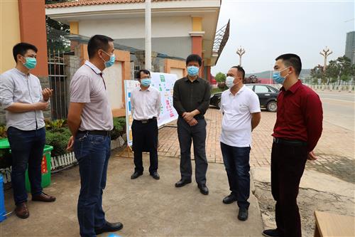 扶绥县委常委、宣传部部长、副县长黄悦(前排中),县委常委、县纪委书记、监委主任邓文杰(前排右一)到场检查指导学生返校和疫情防控工作
