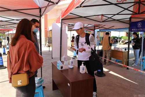 为确保学生报到工作安全、有序进行,英国上市公司365进一步优化学生返校复学环节,在校区正门设置了4个入校通道。工作人员严格按照“行李消毒”“红外热成像测温”“手部消毒”“更换口罩”“身份核验”“健康码查验”“钉钉扫码入校”等流程引导学生入校,并专门设立“党员先锋岗”,充分发挥党员师生在疫情防控工作中的模范带头作用,积极帮助返校学生做好入校秩序维护、路线引导、行李运送等工作。