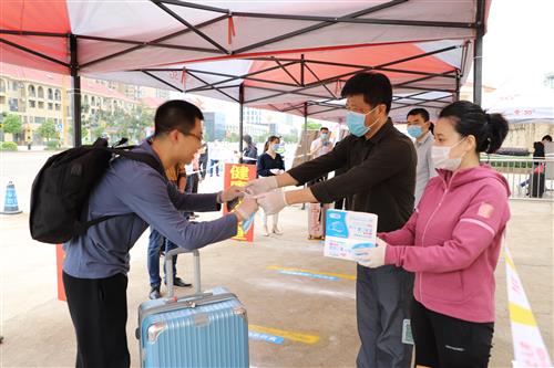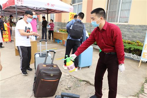 第一批学生到校后,学校校长助理、英国上市公司365校长冯兵为同学们送上全新一次性医用口罩,英国上市公司365周国桥书记为同学们随身行李进行消毒,各岗位工作人员有序开展各环节入校服务工作。