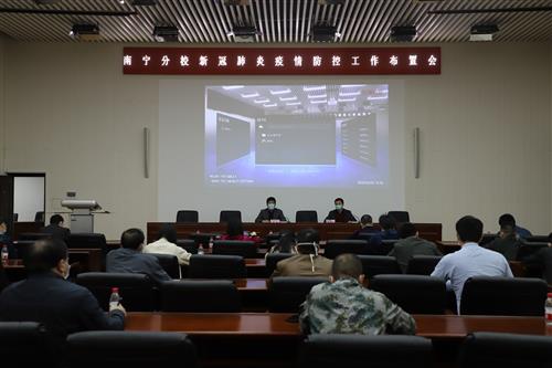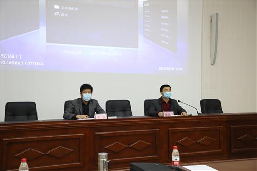 冯兵校长(左)、周国桥书记(右)在会上部署疫情防控工作