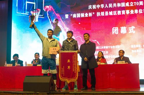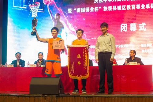 12月25日晚,为期一个月的“庆祝中华人民共和国成立70周年暨‘南国铜业杯’扶绥县城区教育事业单位首届男子篮球联赛”在我校空港校区体育馆圆满闭幕。