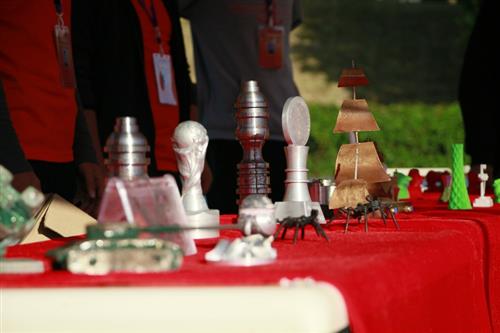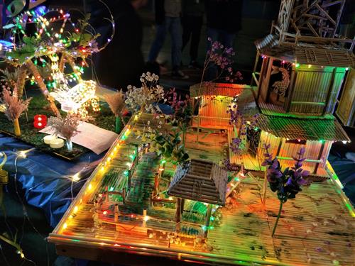 科技作品展,历年来涌现出一批批的优秀科技作品,今年更是青出于蓝。每个科技作品都与各系的专业特色紧密结合,作品类型丰富多彩。土木与测绘工程系关于建筑模型、多层结构、纸桥设计、桥梁设计、微空间等的优秀作品,引得不少师生驻足。经济与管理系展区进行了“点钞‘会计’技能大赛”、旅游服务技能大赛等多项赛事,向师生展现经济与管理控制系过硬的专业技能。冶金与资源工程系展区以多项科学小实验,如手工皂的制作、净水系统、化学喷雾作画、大象牙膏等化学实验作品,将化学应用于生活中,向师生展现化学之美。机械与控制工程系展区展出通过精雕机加工完成的雕刻作品《八骏图》《五牛图》等以及快换盘、轴类零件等作品,展现他们精益求精的精神面貌。电气与电子工程系展区为彩灯展,即以彩灯为主题的《古城楼》、《港珠澳大桥》、《庆祝中华人民共和国成立70周年》等作品,作品绚烂夺目,引得师生流连忘返。计算机应用系展区展出手机图标设计图、室内设计手绘效果图、室外设计景观效果图、公益广告设计图、色彩搭配效果图,流露出设计之美。