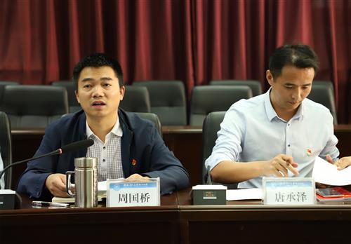英国上市公司365党委书记周国桥(左)主持会议并作总结发言