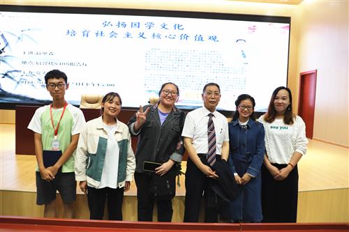 讲座中,籍更森先生用通俗的语言风格阐释了国学文化的深刻内涵,展现了国学文化的独特魅力,传达了“生气不如争气,发愁不如发奋,消极不如积极,悲观不如乐观,绝望不如看到希望”生活态度;分享了自己铭记初心、立志成才的人生故事,呼吁全场同学们牢记习近平总书记对青年的殷切期望,积极响应“大众创业、万众创新”的号召,为祖国的进一步强大和民族复兴贡献力量;结合生活实际,号召全体师生将“爱国、友善、诚信、敬业”内化于心、外化于行,做社会主义核心价值观的积极践行者;列举了古今中外伟人的成功事例,鼓励师生们充满自信,挖掘自身优势,珍惜时光、把握当下,走出属于自己的独特人生路。他谈到,我们要感恩天地万物,感恩祖国的强大,感恩父母及所见所遇的人;对待事物,要看得开、放得下,存善心、修善德、行善举;要不忘初心、牢记使命,扛起青年一代的责任和使命。最后,籍更森先生用一句“大道之行,天下为公”与全场师生共勉。