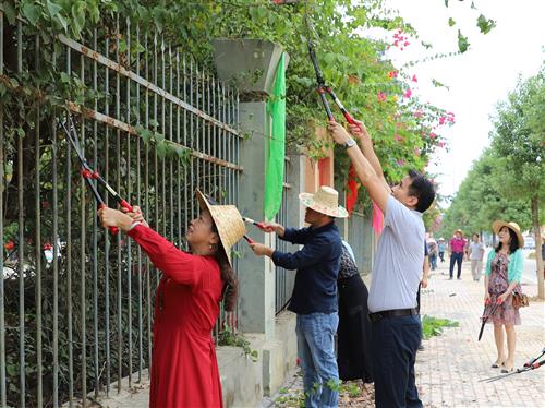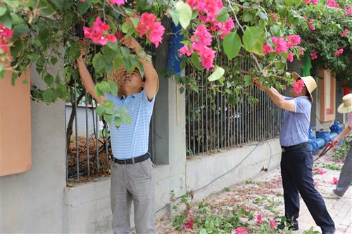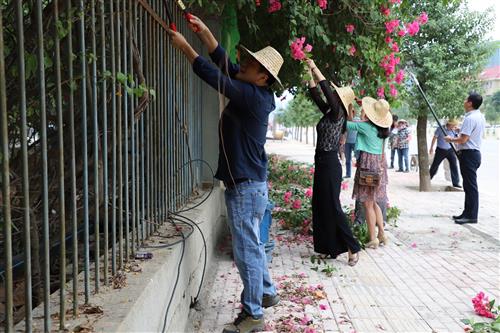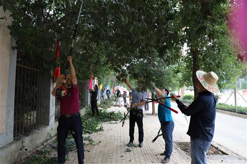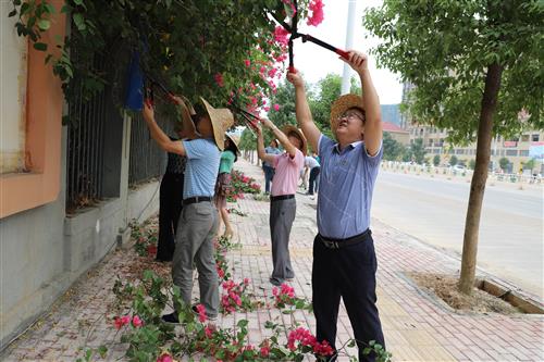 活动现场,大家热情高涨,积极参与到整个志愿活动中,齐心协力、互帮互助,手背、手臂上被树枝花枝划伤、划破丝毫不在意。闷热的天气下,在一个多小时的劳动中,树枝上的尘土、枯叶落在校领导们的头上、脸上、衣服上,大家的衣服被汗水浸润着。经过修剪、清理,校园正门-西侧门外墙一带干净整洁、赏心悦目,人行道上面貌焕然一新。