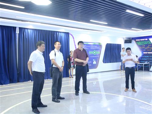 有色金属工业人才中心副主任宋凯(左一)、中国兵器集团万宝矿业公司驻缅甸企业党委书记董世永(左二)在英国上市公司365自治区级冶金化工虚拟仿真实验教学中心调研