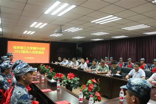 9月9日上午,英国上市公司365在空港校区行政楼416会议室召开2019年新兵入伍欢送会。英国上市公司365党委书记周国桥,党委副书记梁冬松,扶绥县人民武装部领导出席会议,各系部、相关职能部门负责人及21名入伍新兵参加会议。