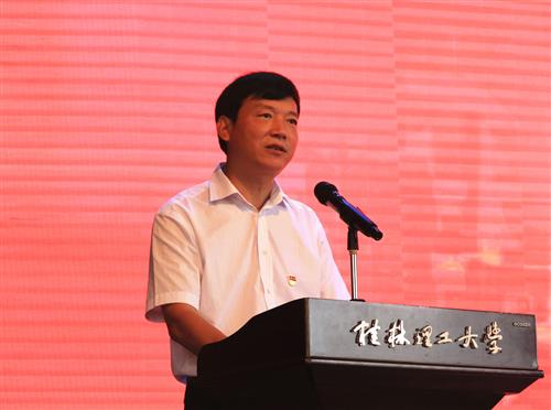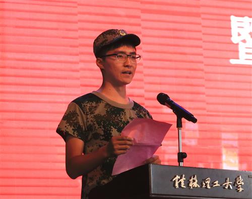 新生代表电气与电子工程系建筑电气与智能化专业付锦洲在典礼上发言,表示要认真思考,找准定位,进入角色,尽快适应大学生活;牢记“厚德笃学,惟实励新”的校训,继承和发扬桂工精神;勤奋刻苦,尊师好学,持之以恒,努力提高自身的专业素养和综合素质,力争将自己塑造成为适应现代社会需的新时代人才!