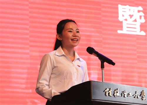 老生代表土木与测绘工程系2016级工程管理专业宋雨潞鼓励2019级新生们立德树品、不忘本心,做“有理想、有追求,有担当、有作为,有品质、有修养”的当代大学生;志存高远、铸就梦想,做一个有抱负、有学识、有社会责任感的人,成为桂工的骄傲榜样、社会的中坚力量、国家的栋梁之才。