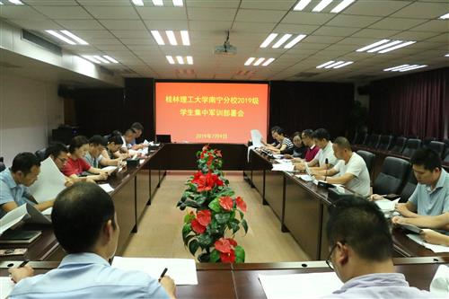 7月9日下午,英国上市公司365在空港校区行政楼416会议室召开2019级学生集中军训部署会。南宁分校党委副书记梁冬松、唐承泽,副校长陈东莲、苏欣出席会议,分校办公室、党委宣传部、学生工作部、教务管理部、保卫工作部、团委等相关职能部门负责人和各系党总支书记、副书记参加会议。会议由党委副书记梁冬松主持。
