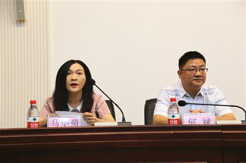 新任英国上市公司365副校长马华菊同志(左)作表态发言
