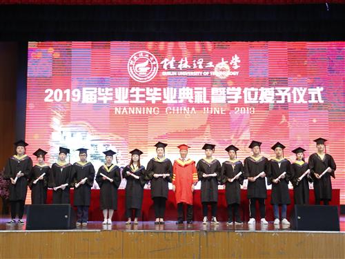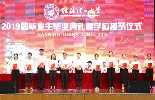 学校党委副书记、副校长吴志强宣读了学校《关于表彰学校2019年优秀大学毕业生的决定》(桂理工〔2019〕13号)和《自治区教育厅关于认定2019年度广西壮族自治区普通高等教育优秀大学毕业生的通知》(桂教学生〔2019〕7号)文件。
