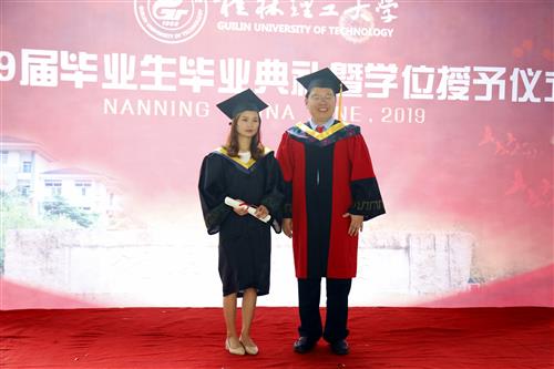 电气与电子工程系袁梅老师作为教师代表发言,为2019届毕业生送上美好祝福,希望每一位毕业生认真踏实、躬身实践、创新进取,把个人梦想融入家国,并为之努力,成为国家和民族的脊梁,奉献祖国、回报社会,做一个有情怀的“桂工人”!