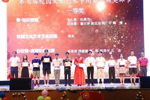 校园文化艺术节各赛项一等奖获得者上台领奖