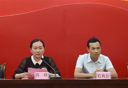 分校副校长、组织部部长、党校教务长苏欣(左)在结业典礼上讲话