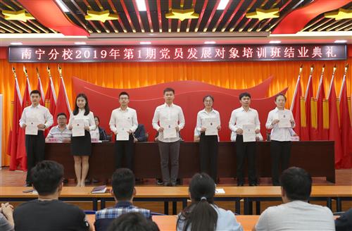 5月6日下午,分校党校2019年第1期党员发展对象培训班结业典礼在党校(党员活动中心)举行。分校副校长、组织部部长、党校教务长苏欣,各系党总支书记(副书记)出席结业典礼,培训班92名党员发展对象参加结业典礼。