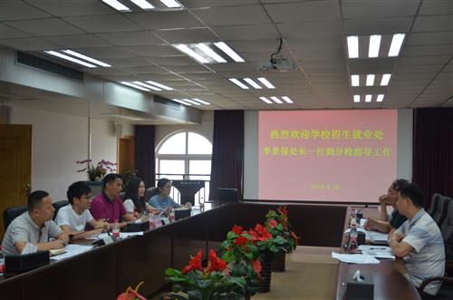 4月28日下午,学校招生就业处处长李景保在副处长迟国东、朱怀森的陪同下,到分校指导2019年招生就业工作,并在行政楼416会议室分别召开招生工作会议和就业工作会议。分校党委副书记唐承泽,教务管理部、后勤工作部负责人,各系党总支书记、副书记、就业工作辅导员,招就办工作人员等参加会议。