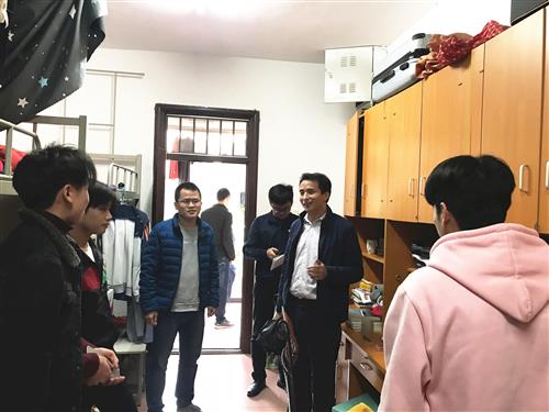 分校党委副书记唐承泽(右二)到学生宿舍检查安全隐患