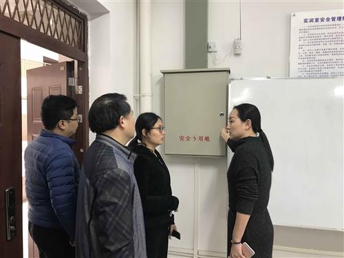 分校副校长苏欣(右一)到实训楼检查安全隐患