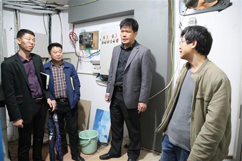 学校校长助理、分校校长冯兵(右二),分校副校长耿杰利(左二)到学生宿舍检查供电系统设备