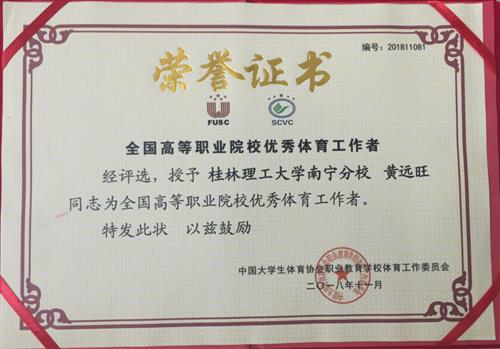 分校体育教学部黄远旺老师荣获“全国高等职业院校优秀体育工作者”称号