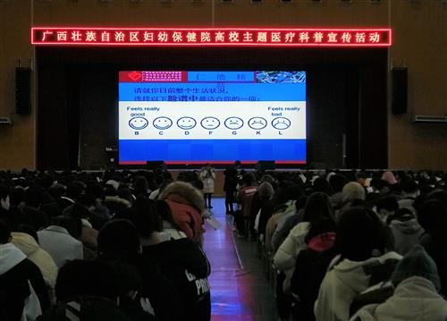 为进一步提高大学生保护身心健康,增强疾病的预防意识,1月8日下午,广西区妇幼保健院、广西交通台应邀在分校体育馆举行2019年“关爱生命,关爱自己”艾滋病预防、心理科普知识、地中海贫血主题科普宣传活动。分校党委副书记唐承泽,广西区妇幼保健院副主任护师张华、妇产科主治医师王立芳、心理治疗师李珊珊出席活动。分校学生工作部、保卫工作部相关老师及2018级学生共3000余人参加活动。