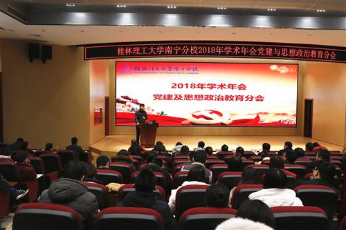 1月9日下午,分校2018年学术年会党建及思想政治教育分会在空港校区启智楼8408报告厅举行。学校校长助理、分校校长冯兵,分校党委副书记梁冬松,纪委书记张雷,副校长苏欣出席会议。分校各党总支委员、党支部支委,全体辅导员、思政教师参加会议。