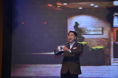 抽奖环节,分校党委副书记梁冬松为抽中一等奖的幸运儿颁发奖品