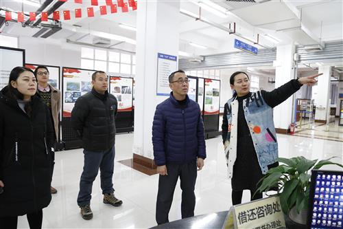 分校党委副书记梁冬松(右二)、副校长苏欣(右一)在图书馆开展安全检查