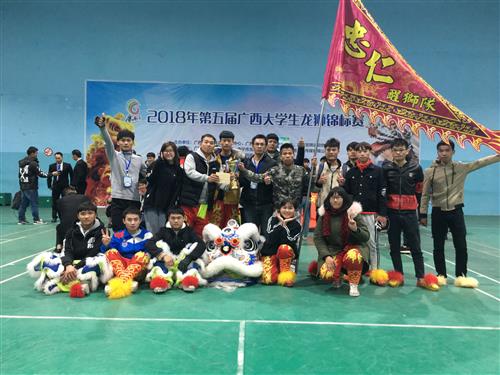 12月29日,由广西社会体育发展中心、广西体育卫生艺术学会、广西龙狮运动协会主办的2018年第五届广西大学生龙狮锦标赛,在南宁隆重举行。分校忠仁醒狮队在分校韦宁照、黄运堪老师带领下首次参赛,并荣获传统南狮项目三等奖。