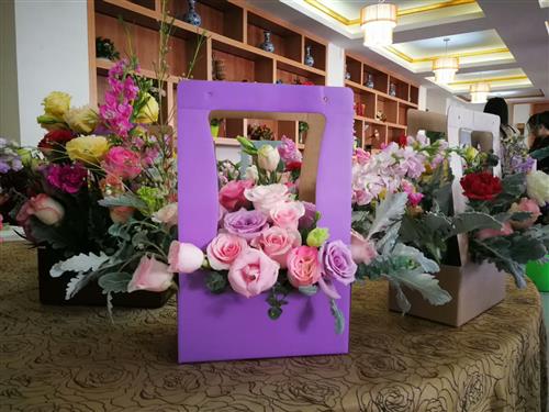 此次插花艺术培训由插花艺术理论知识学习、插花实操培训两部分组成。活动中,詹原教授着重解析了现代西式插花中手提式花篮的插花艺术技巧,具体讲解了相邻色、对比色、等间距三色、分裂互补色四种色彩搭配方式,确定主花和主色调。詹老师分步骤进行实操示范,中讲解如何整理、修剪花材和插花时的注意事项。