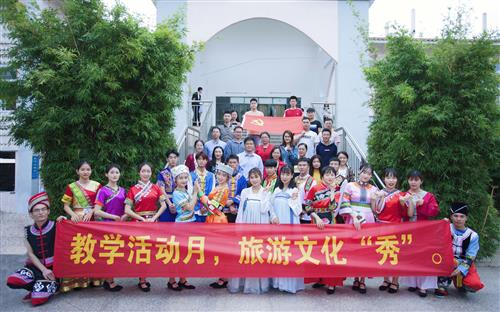 12月5日,经济与管理系旅游管理专业联合教工第二党支部在空港校区行健路举行“教学开放月,旅游文化秀”快闪活动。学校党委副书记、副校长吴志强,学校副校长王敦球,扶绥县委常委、统战部部长黄海生,学校校长助理、分校校长冯兵,分校副校长陈东莲等领导嘉宾老师亲临现场指导。