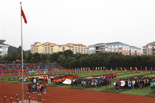 学校校长助理、分校校长冯兵(前排中)为第27届田径运动会致闭幕词