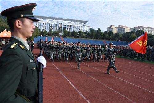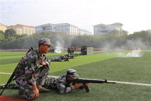 伴随着分列式进行曲,新生排成方阵,以整齐的步伐、严整的军容和热情高昂的斗志,意气风发地依次走过主席台。女子匕首操方阵和擒敌拳方阵带来了气势磅礴的军体操表演;单兵战术综合演练中学子们英勇顽强、机智灵活;花式队形、手语操表演在教官的指令下,向现场师生展示了拳拳爱校、爱国之心和报国之志,赢得了阵阵掌声。