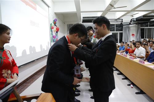 7日晚,校级十个团体的新老委员在启智楼208教室隆重举行换届大会。大会在同学们激情演唱共青团团歌中拉开帷幕,一段温馨感人的换届视频掀起高潮。团委负责人宣读分校2018年学生干部任职文件;各团体指导老师分别为各团体16级干部颁发荣誉聘书;2016级委员为2017级委员佩戴工作牌,并将一年来的工作资料交接给新任委员们。