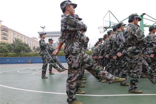 在教官严厉的教导下,同学们不断矫正原本笨拙的动作与姿势;偶尔的烈日下汗流浃背时的军姿充满力量;在女子匕首操时在整齐动作震天响亮的一声“杀!”喊出了巾帼不让须眉的飒爽;操场上方队齐挥双手训练着献给祖国的赞歌;迈着正步一齐向前的背影和着齐整的踏步声气魄十足。