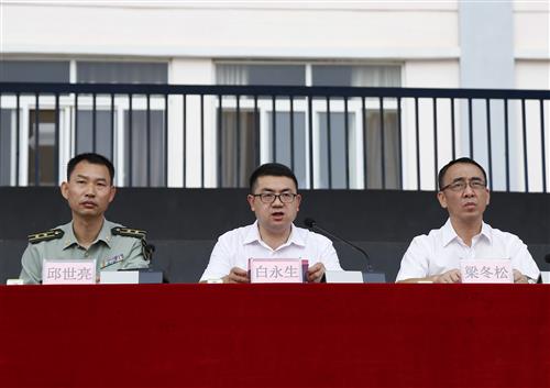 分校党委白永生书记在大会上讲话。他首先代表分校党委、行政向大力支持分校军训工作的崇左军分区和崇左陆战教育基地的领导和全体教官表示崇高的敬意和衷心的感谢,向参加军训的全体2018级新生致以亲切的问候,并指出大学生军训对于国家和学生个人的重要意义。为保证军训高质量的开展,白永生书记向全体同学提出五点要求:一是要端正态度、自觉参训。同学们要通过军训培养自己不怕困难、勇于进取、敢于献身的精神、要立志为祖国人民作贡献,以完成军训任务作为新起点,为将来把自己培养成为一个全面发展的合格人才,打下良好的基础。二是要严格要求,刻苦训练。同学们要像军人一样严格要求自己,遵守一切规章制度,严格按军人的生活制度强化训练.遵循教官的要求,在训练中不断提高自己的各项能力,圆满完成军训任务。三是要尊敬教官,虚心学习。同学们要虚心学习军训教官们纪律严明、素质过硬、作风优良的人民解放军光荣传统和作风。四是要团结友爱,互助提高。同学们要坚持集体主义原则,培养团结互助精神,正确处理好个人与集体、局部与整体的关系,做到个人利益服从集体利益,坚决克服个人主义和自由主义思想,在军训中互帮互助,共同提高。五是要严守纪律,确保安全。军训期间,同学们要严格听从教官的指挥,自觉增强安全意识,严防各种安全事故的发生。严禁脱离集体私自离队,做到服从命令,听从指挥,令行禁止。