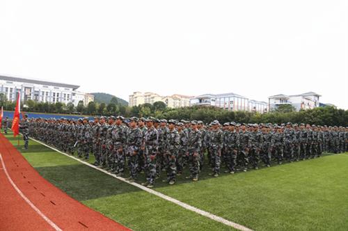 分校2018级新生集中军训在嘹亮的国歌声中拉开序幕。分校2018级新生军训团,下设8个营,50个连,5个表演方队和1个直属分队。本次军训以“深入贯彻落实习近平新时代中国特色社会主义思想和习近平强军思想,进一步提高大学生国防意识、增强国防观念”为指导思想,旨在通过军训使学生系统接收国防教育、军事理论教育和军事技能训练,增强学生的国防观念和国家安全意识,激发学生的爱国热情,培养学生集体集中、革命英雄主义和艰苦奋斗、吃苦耐劳的精神,提高学生组织纪律性及自我管理能力,进一步提升综合素质。