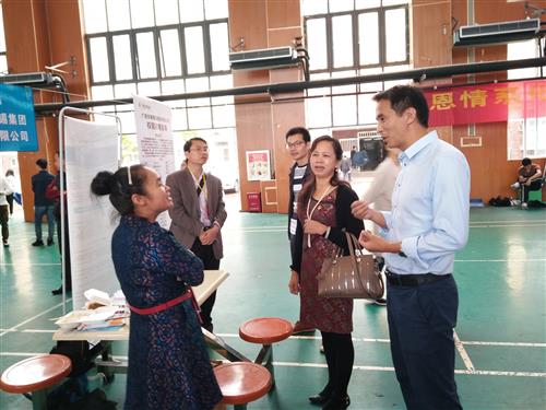 分校党委副书记唐承泽(右一)、副校长陈东莲(右二)亲临招聘会现场指导工作