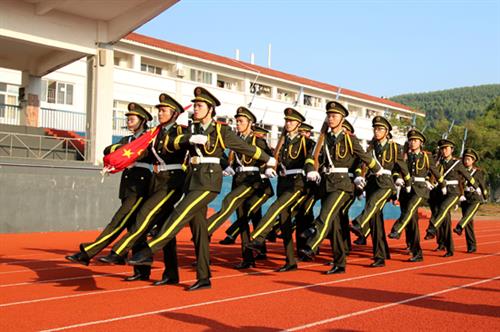 上午8时,伴随着冉冉升起的太阳,23名英姿飒爽的国旗护卫队队员护送鲜艳的五星红旗进场。伴随着庄严的国歌声,五星红旗冉冉升起,迎风飘扬。全体师生行注目礼,共同祝福伟大祖国繁荣昌盛。