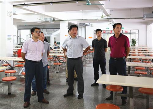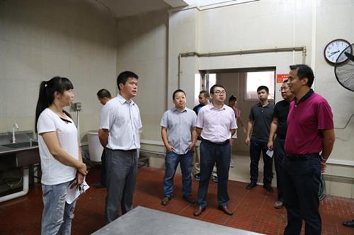 副书记唐承泽(前排右)检查食堂用餐区卫生环境