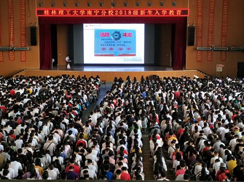 9月12日下午,学校解庆林校长在空港校区体育馆为分校2018级新生作题为“弘扬‘桂工精神’,志存高远,立志成才!” 的入学教育报告。报告会由学校校长助理、分校校长冯兵主持。
