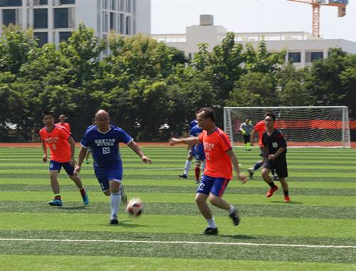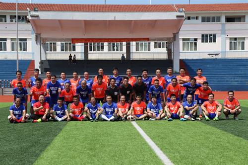 仪式结束后,分校教工队与南宁校友队举行足球友谊赛,冯兵校长为比赛开球,并在开场后十分钟内踢进首球,为空港校区田径运动场启动仪式的成功举行画上了圆满句号。