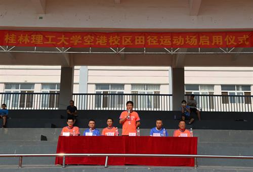 学校校长助理、分校校长冯兵在启动仪式上讲话。他指出,近年来分校在“高质量人才培养 高契合社会服务”的“双高”建设目标引领下,分校迎来了新一轮的快速发展,在学校党委、行政的亲切关怀下,在干部、群众的共同努力下,在全体师生辛勤汗水的挥洒下,分校取得了一些标志性成果。冯兵校长从实训室建设、服务地方、校地合作、学生比赛获奖、新生录取等等方面情况简要介绍了分校近年来取得了的成果,并表示分校众多的成果是大家共同努力的成果。讲话最后,冯兵校长宣布:“桂林理工大学英国上市公司365空港校区田径运动场正式启用!”