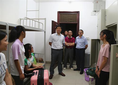 9月8日晚上,学校校长助理、分校校长冯兵,分校党委书记白永生,分校党委副书记梁冬松,分校纪委书记张雷在分校(党委)办公室、学生工作部、后勤管理部负责人陪同下到学生宿舍看望2018级新生。