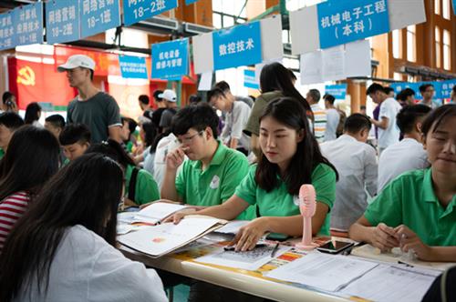 体育馆内,志愿者们发扬着我们桂工迎新的优良传统,认真地解答新生们的问题,有序、高效、细致地办理报到注册手续,让新生们感受到了桂工大家庭的温暖。